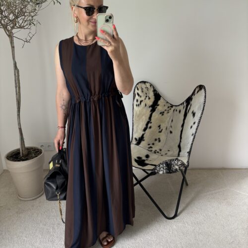 BLUZA POLO PASKI BEŻ CZEKOLADA