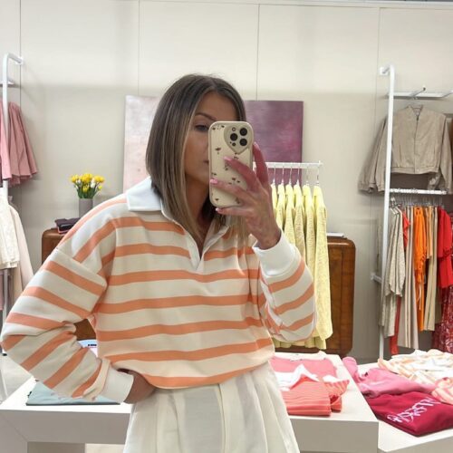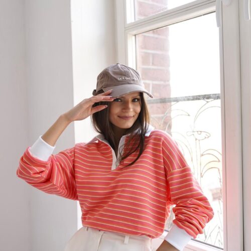 BLUZA POLO PASKI MORELA Z BEŻEM