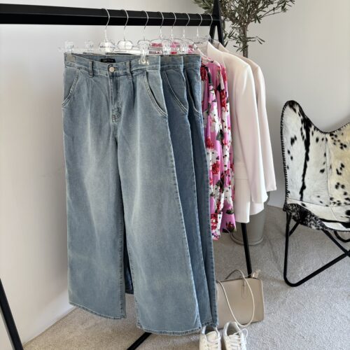 Zakładki przy pasie sprawiają, że spodnie pięknie układają się na sylwetce, podkreślając talię i dodając lekkości całej stylizacji. To fason, który nigdy nie wychodzi z mody i pasuje na wiele okazji – do koszul, swetrów, eleganckich topów czy sportowych zestawów.
