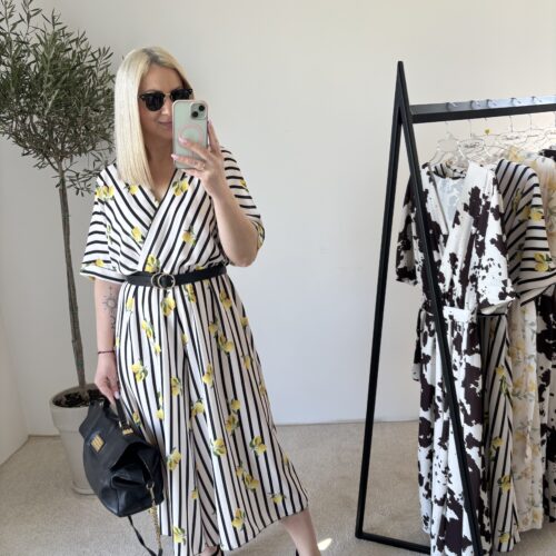 Energetyczny kombinezon z soczystym printem cytryn to idealna propozycja dla kobiet, które kochają modę z charakterem. Dzięki lekkiej tkaninie oraz szerokiej nogawce 7/8 świetnie sprawdzi się zarówno na wakacjach, jak i podczas bardziej eleganckich wyjść — komunii, chrztów czy letnich przyjęć. W połączeniu z trampkami zyskuje bardziej casualowy, miejski wygląd.