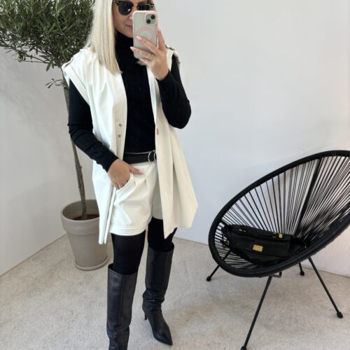 KOMPLET KAMIZELKA OVERSIZE PLUS SPODENKI W ROZMIARZE 36 LUB 38. ELASTYCZNA, BARDZO MIĘKKA TKANINA. IDEALNIE SPRAWDZI SIĘ NA EFEKTOWNE WYJŚCIA JAK I DO PRACY. ŚWIETNE SOLO LUB W SYTYLIZACJI Z CIEPŁYM GOLFEM I GRUBYMI RAJSTOPAMI.