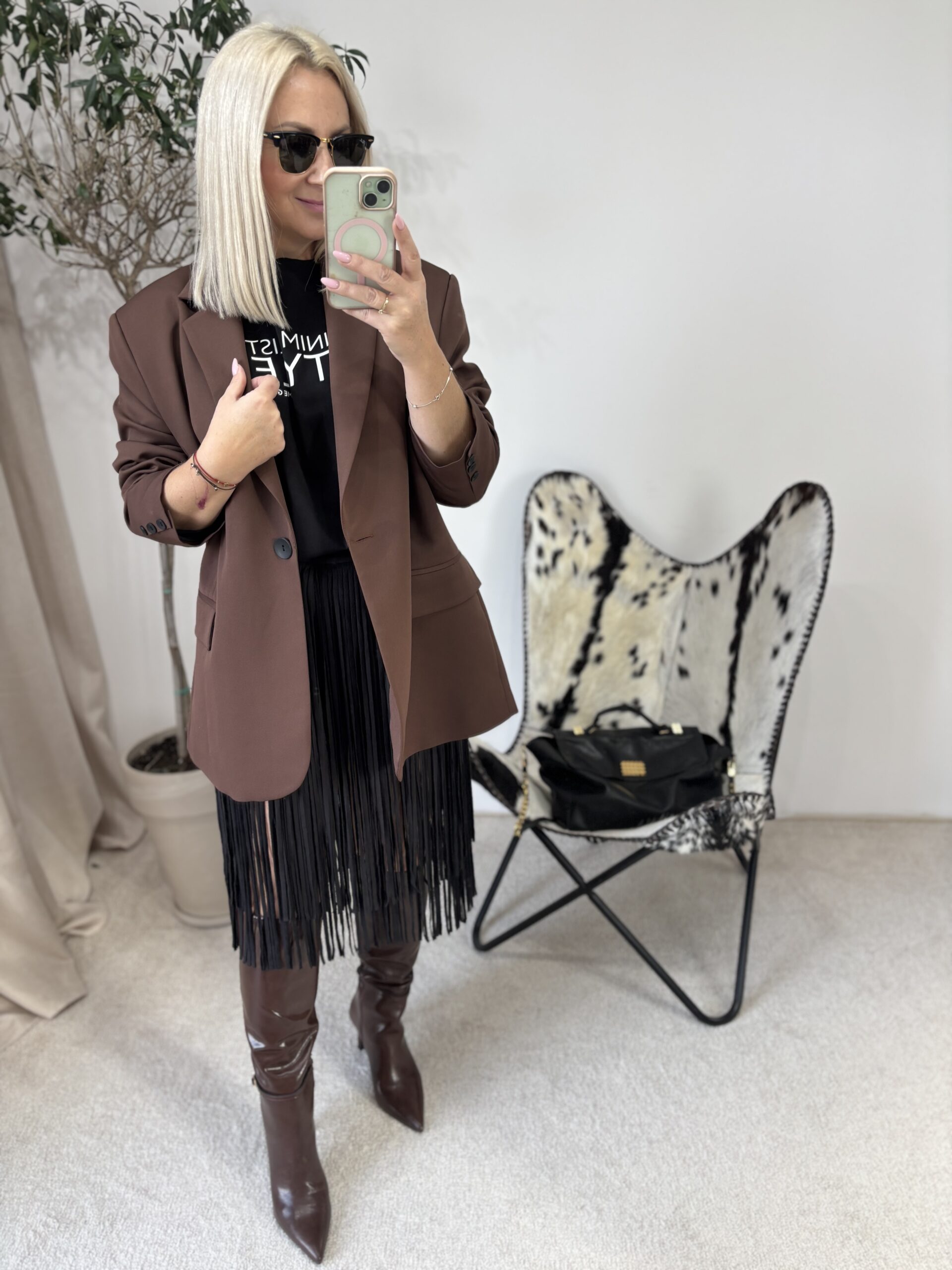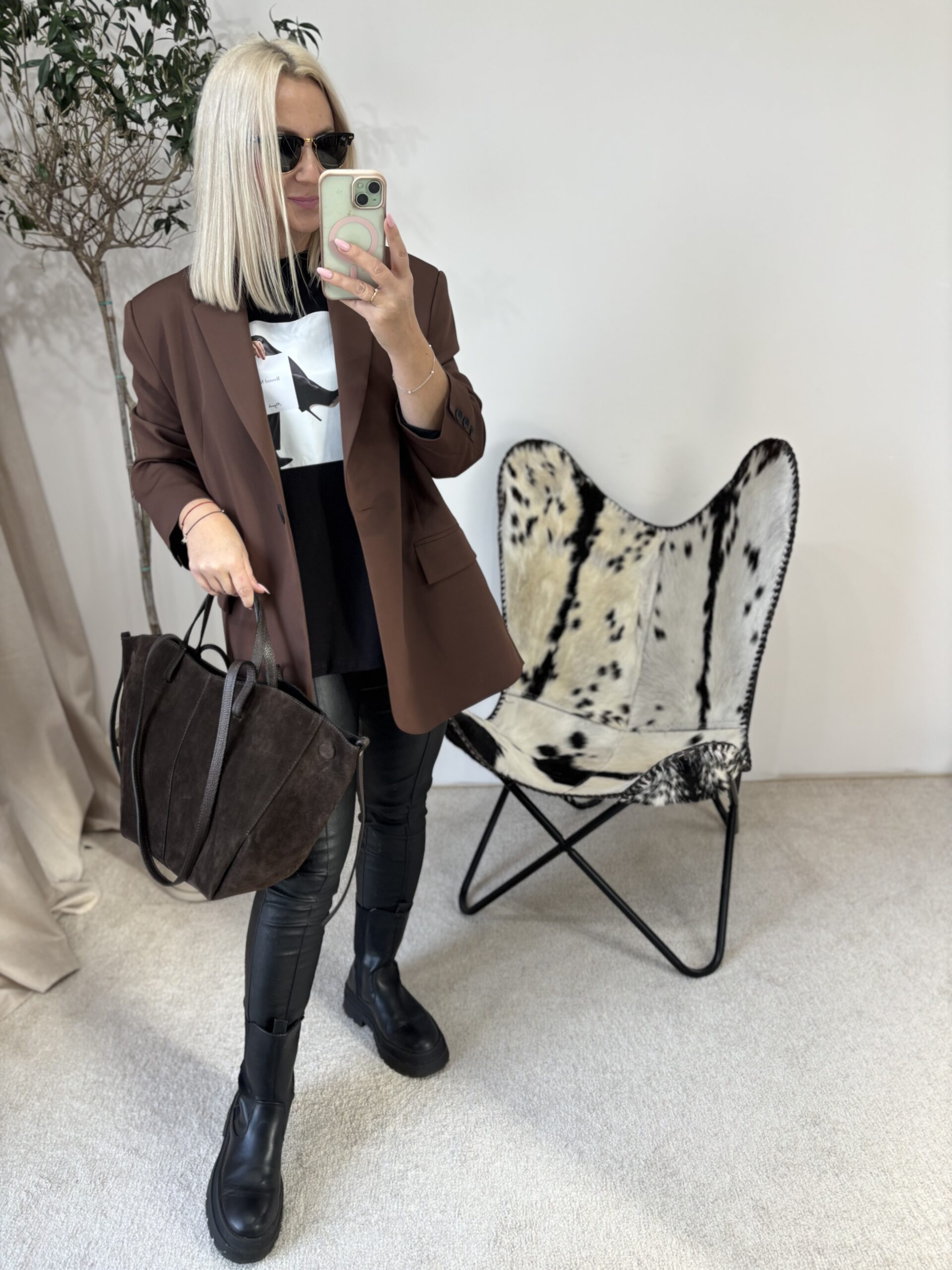Kolor czekolady dodaje całości głębi i klasy — idealny na sezon jesienno-zimowy, ale wiosną również prezentuje się znakomicie.