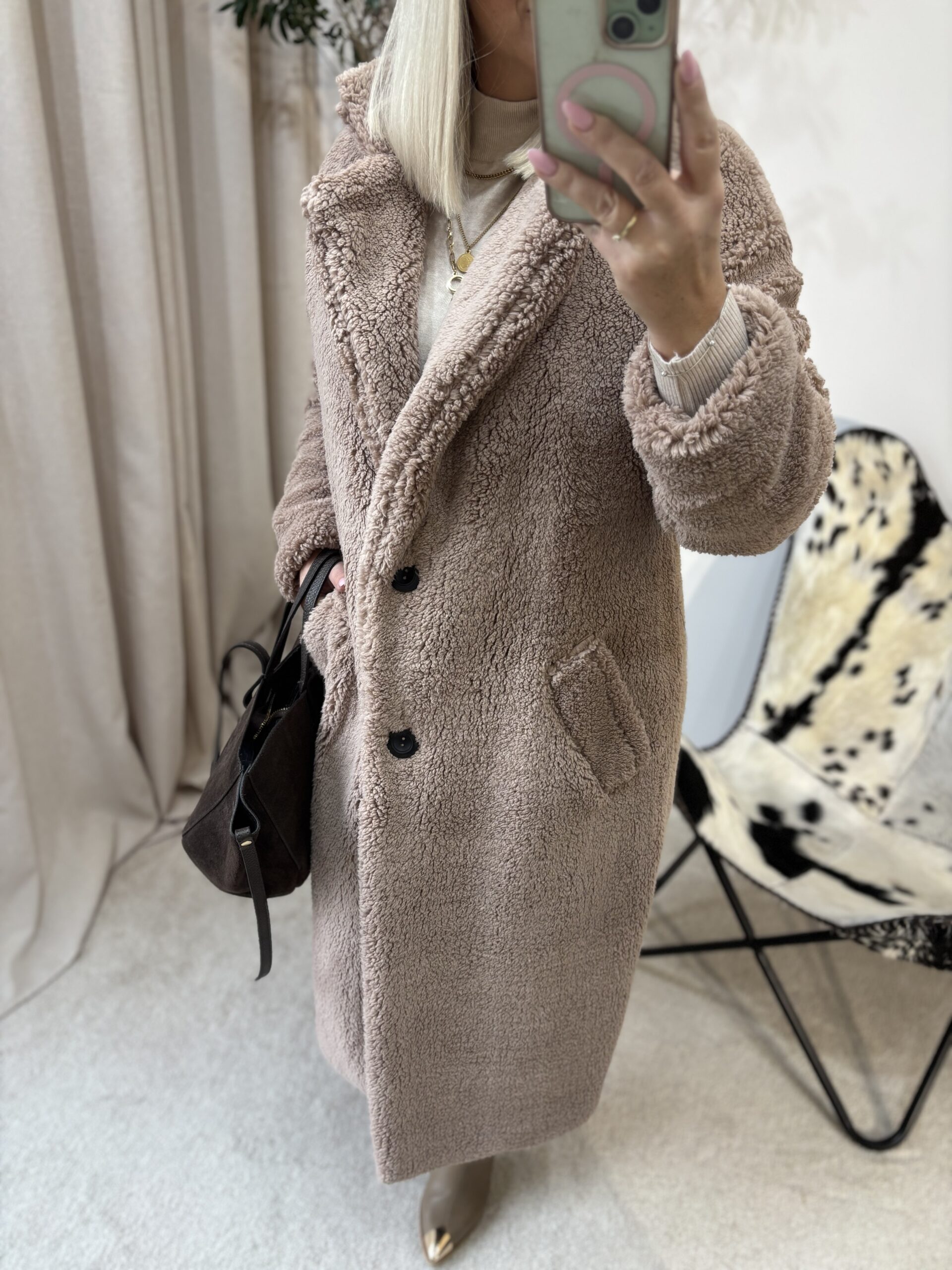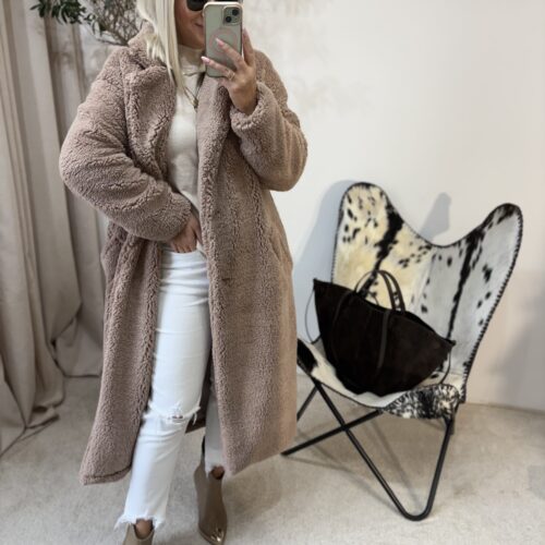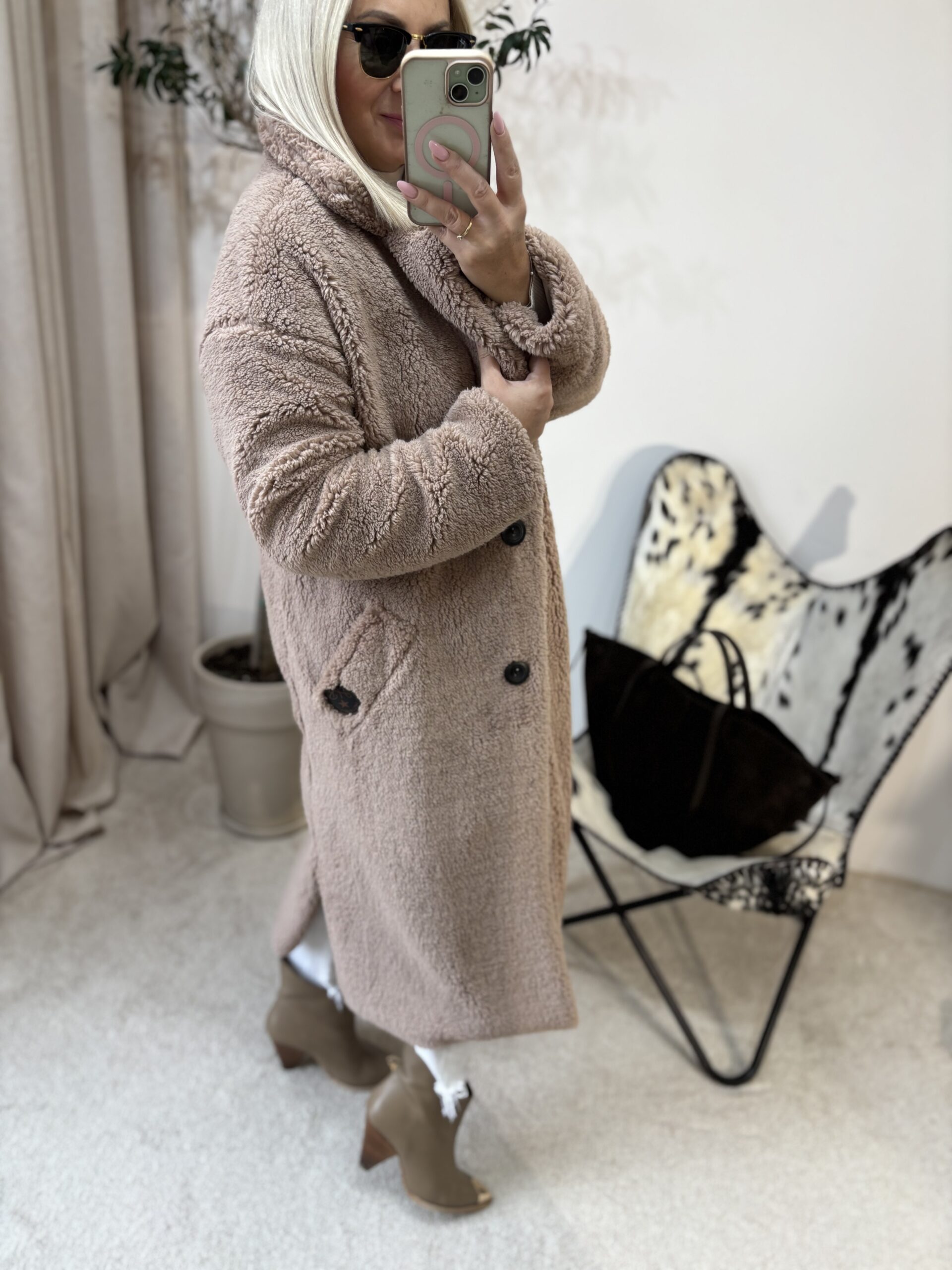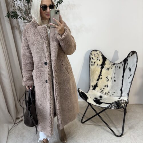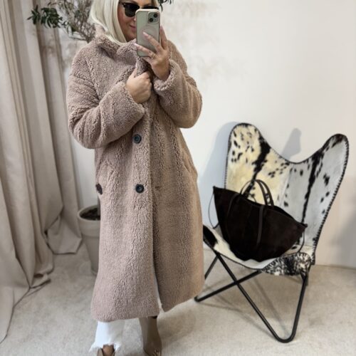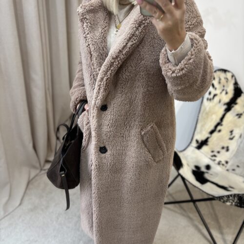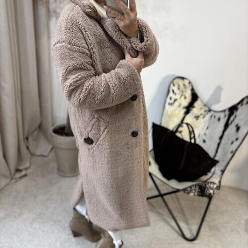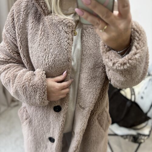Ten płaszcz Teddy to kwintesencja ciepła, miękkości i kobiecego komfortu. Uszyty w Polsce z dbałością o detale, zachwyca jakością wykonania i tym, jak pięknie układa się na sylwetce. Mimo że jest puszysty i niezwykle przyjemny w dotyku, nie poszerza, dzięki świetnie wyprofilowanemu krojowi.