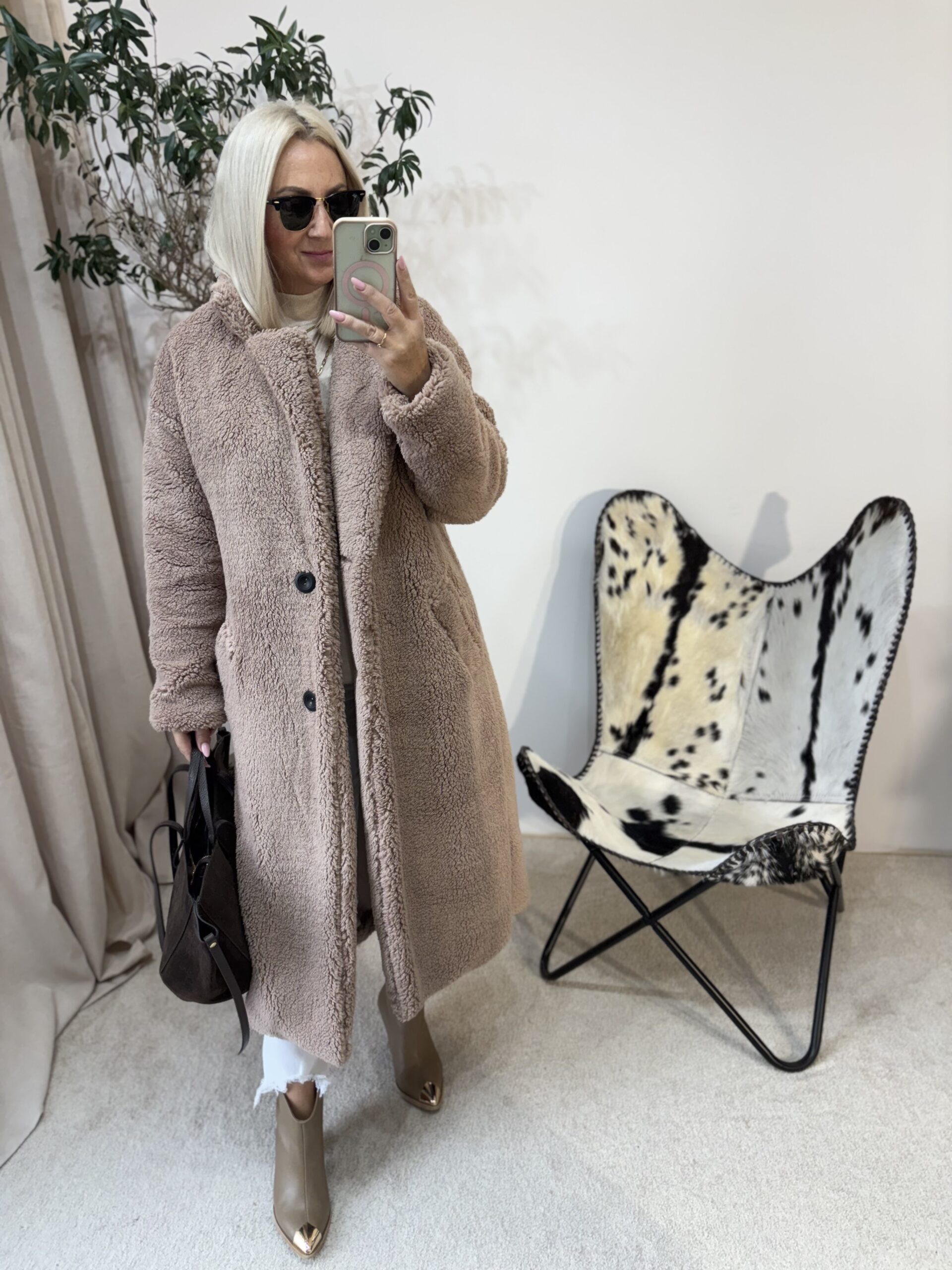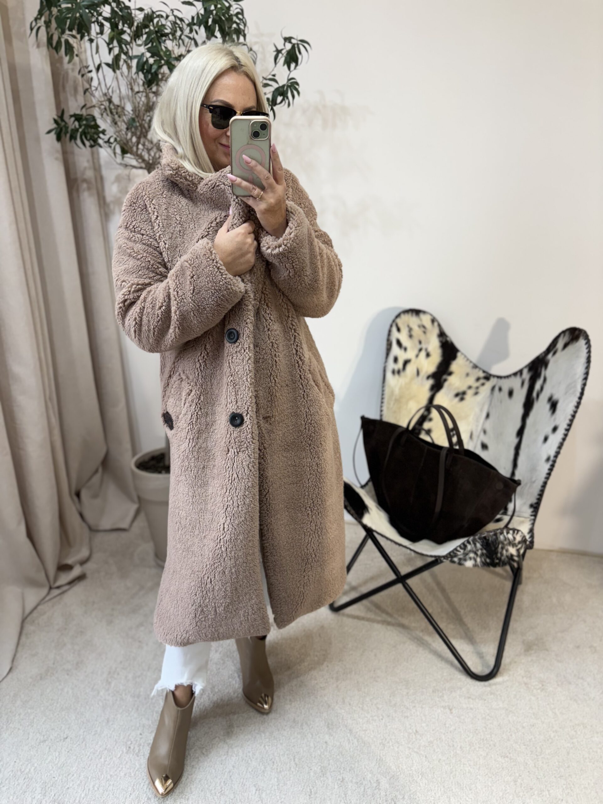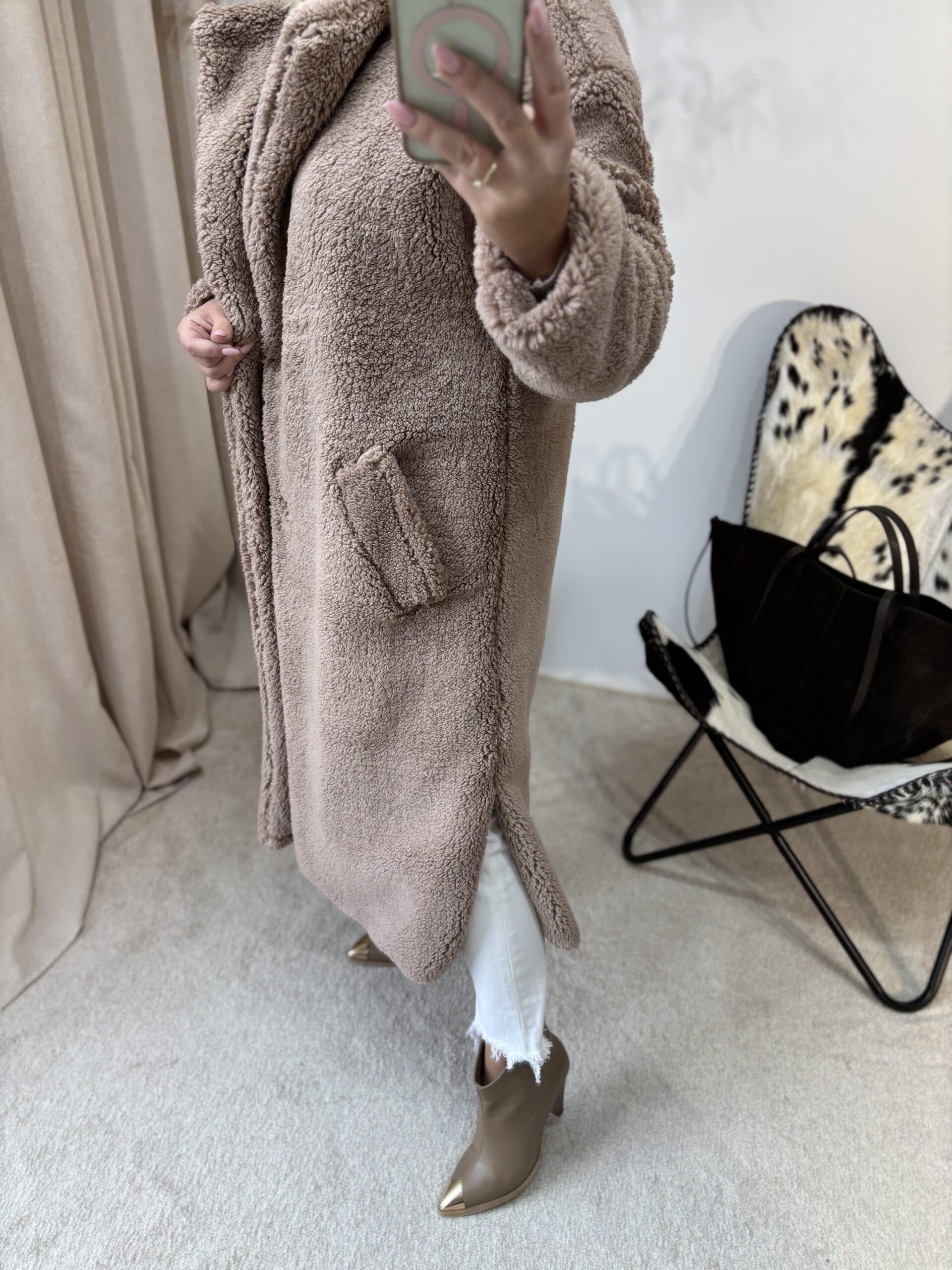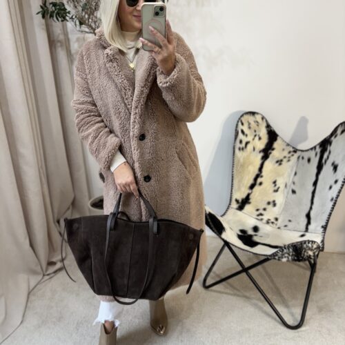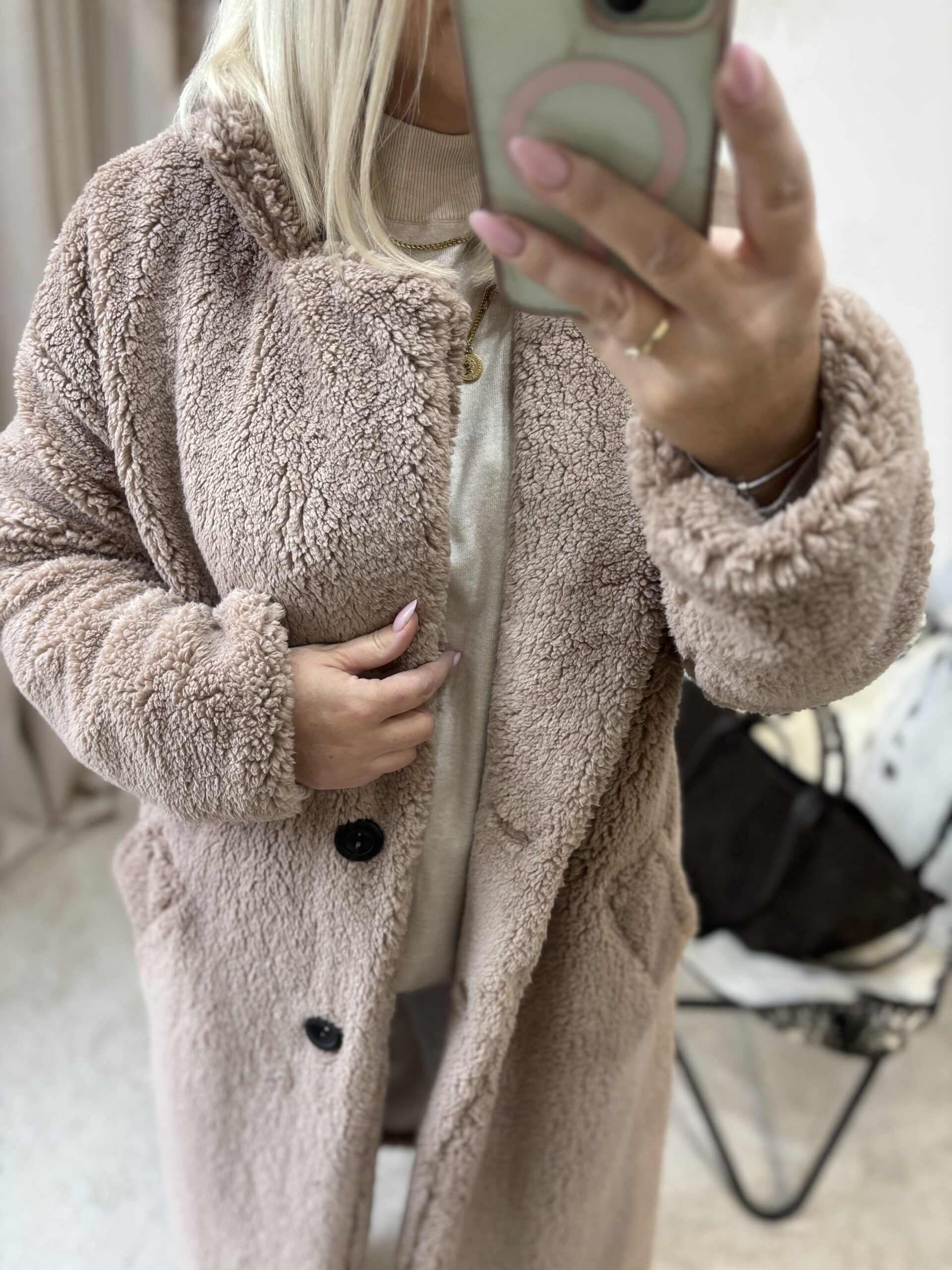 Ten płaszcz Teddy to kwintesencja ciepła, miękkości i kobiecego komfortu. Uszyty w Polsce z dbałością o detale, zachwyca jakością wykonania i tym, jak pięknie układa się na sylwetce. Mimo że jest puszysty i niezwykle przyjemny w dotyku, nie poszerza, dzięki świetnie wyprofilowanemu krojowi.