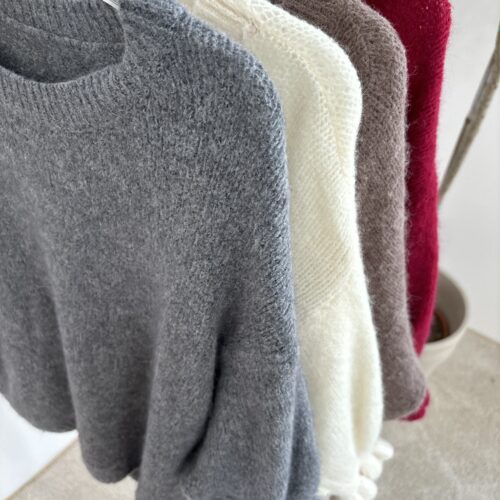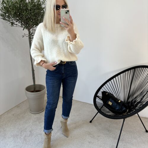 SWETERKI Z BABY ALPAKĄ W SKŁADZIE . MAJĄ DELIKATNĄ, OZDOBNĄ FALBANKĄ PRZY RĘKAWIE. SZEROKOŚĆ 110CM MIERZONE NA PŁASKO.