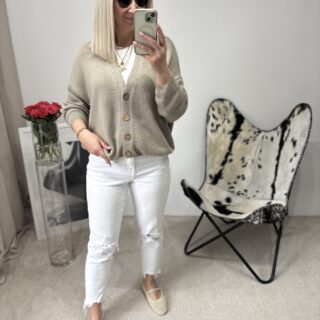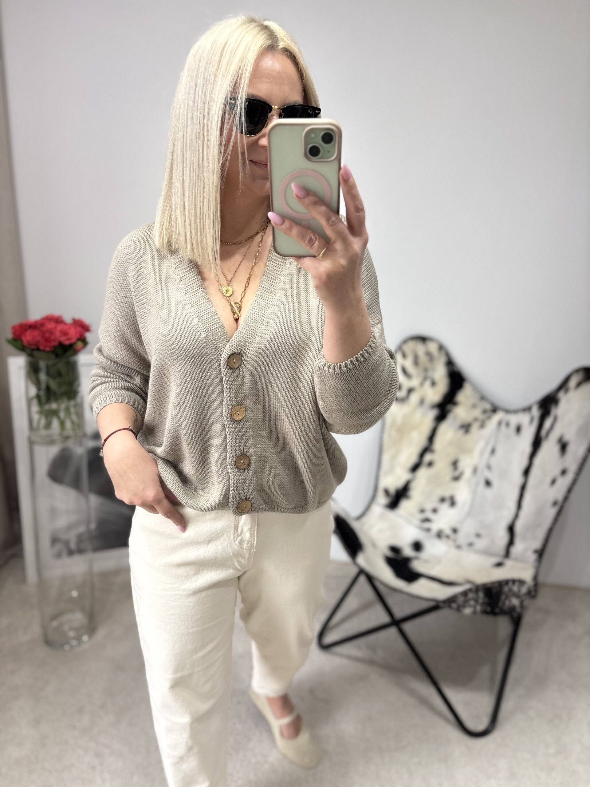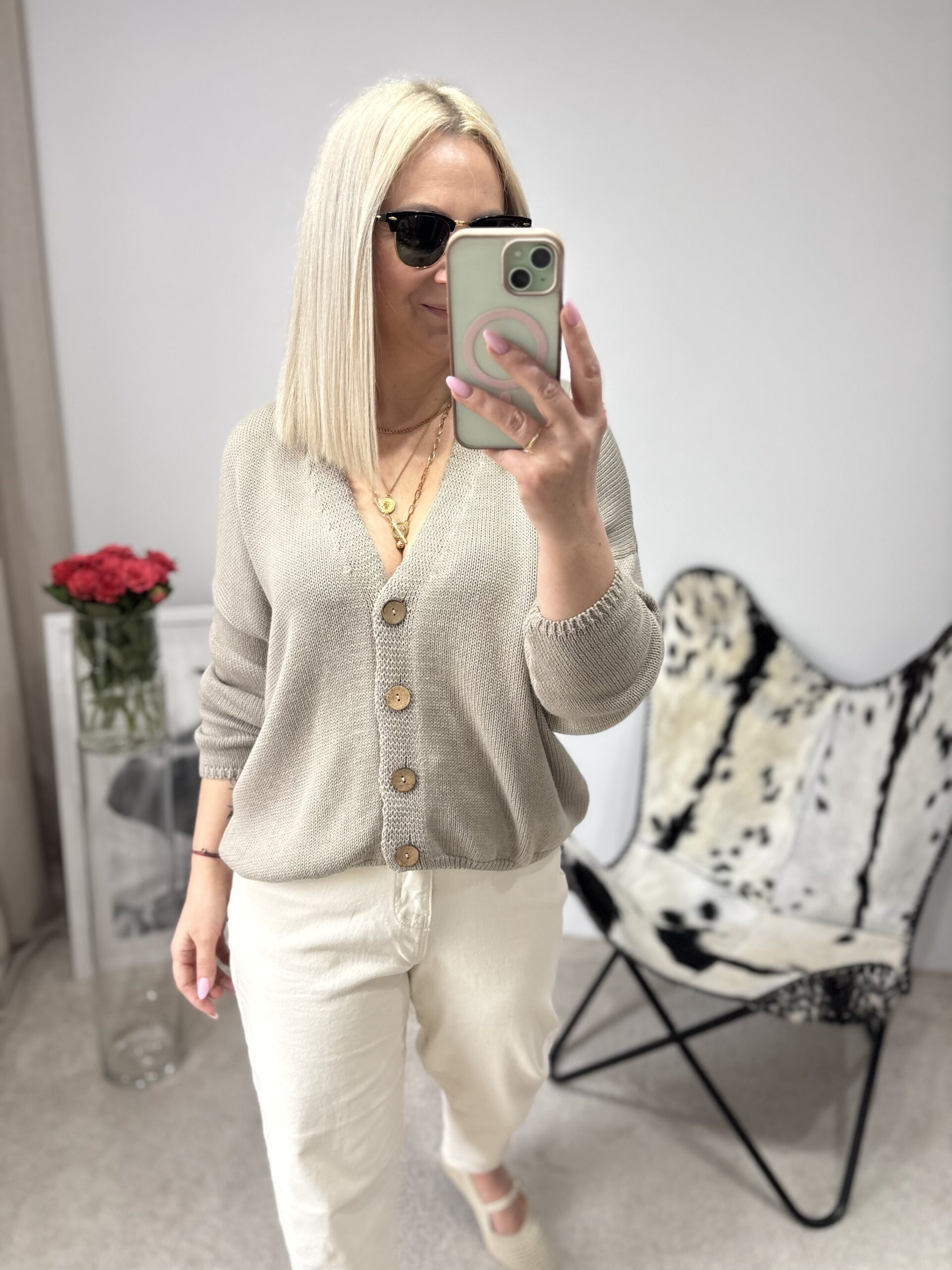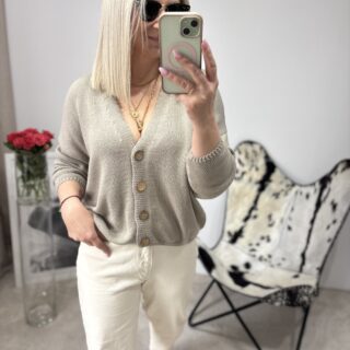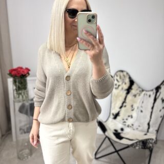 SWETEREK Z GUZIKAMI CIEMNY BEŻ