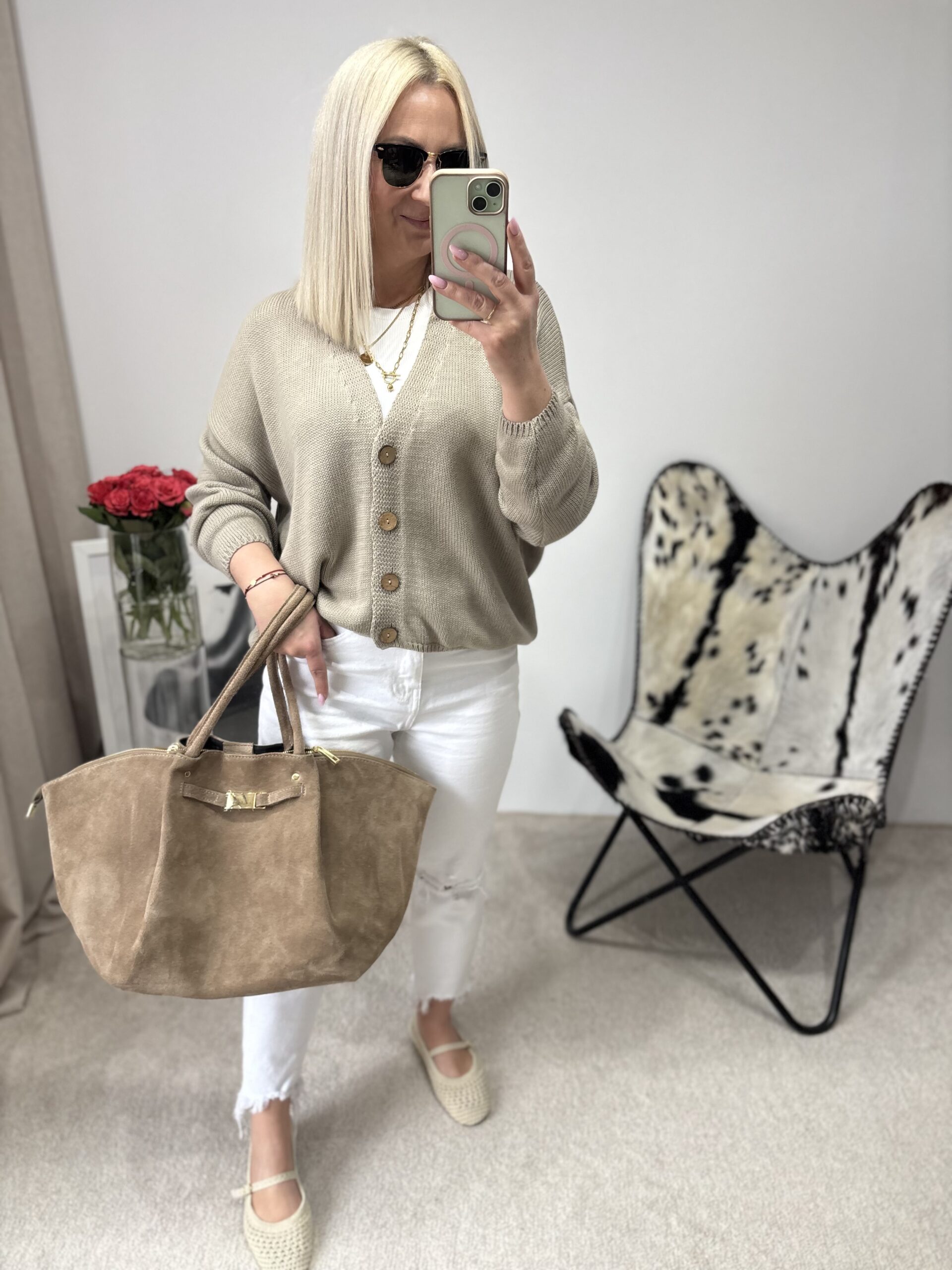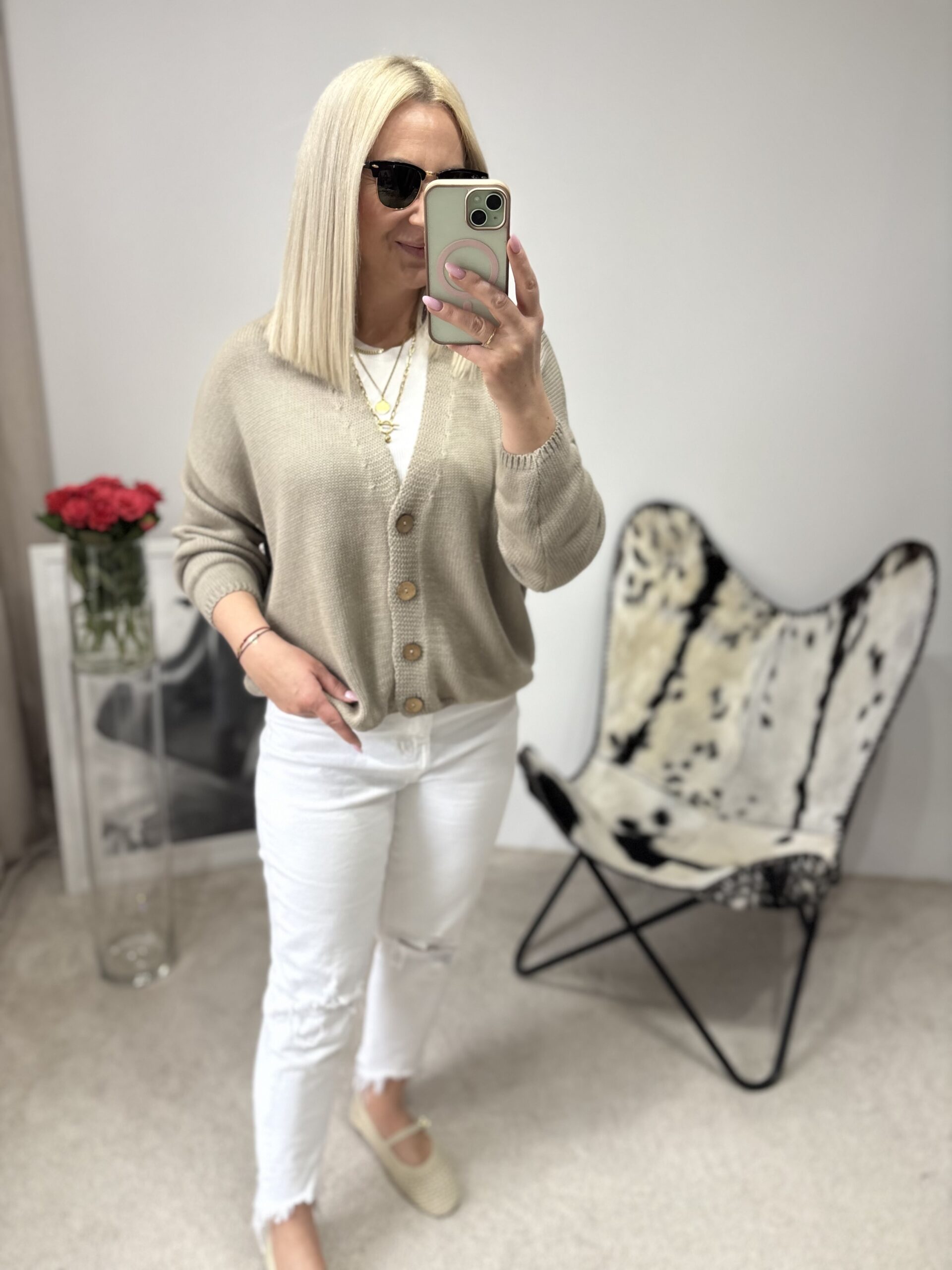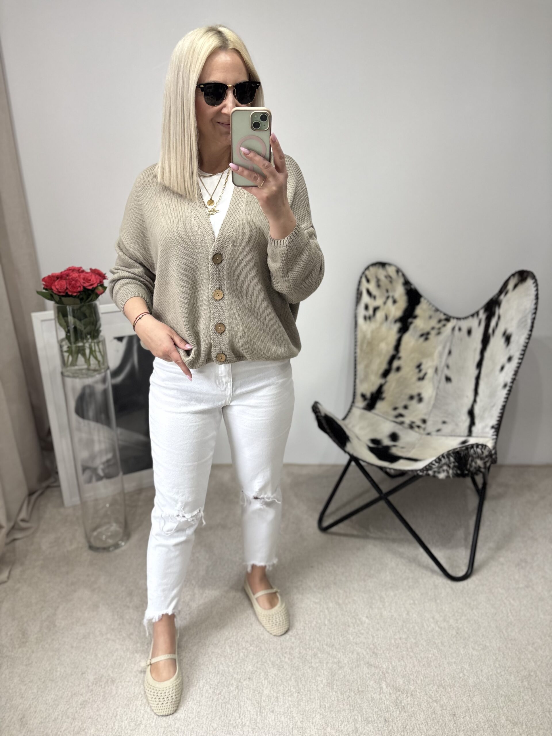 SWETEREK Z GUZIKAMI CIEMNY BEŻ