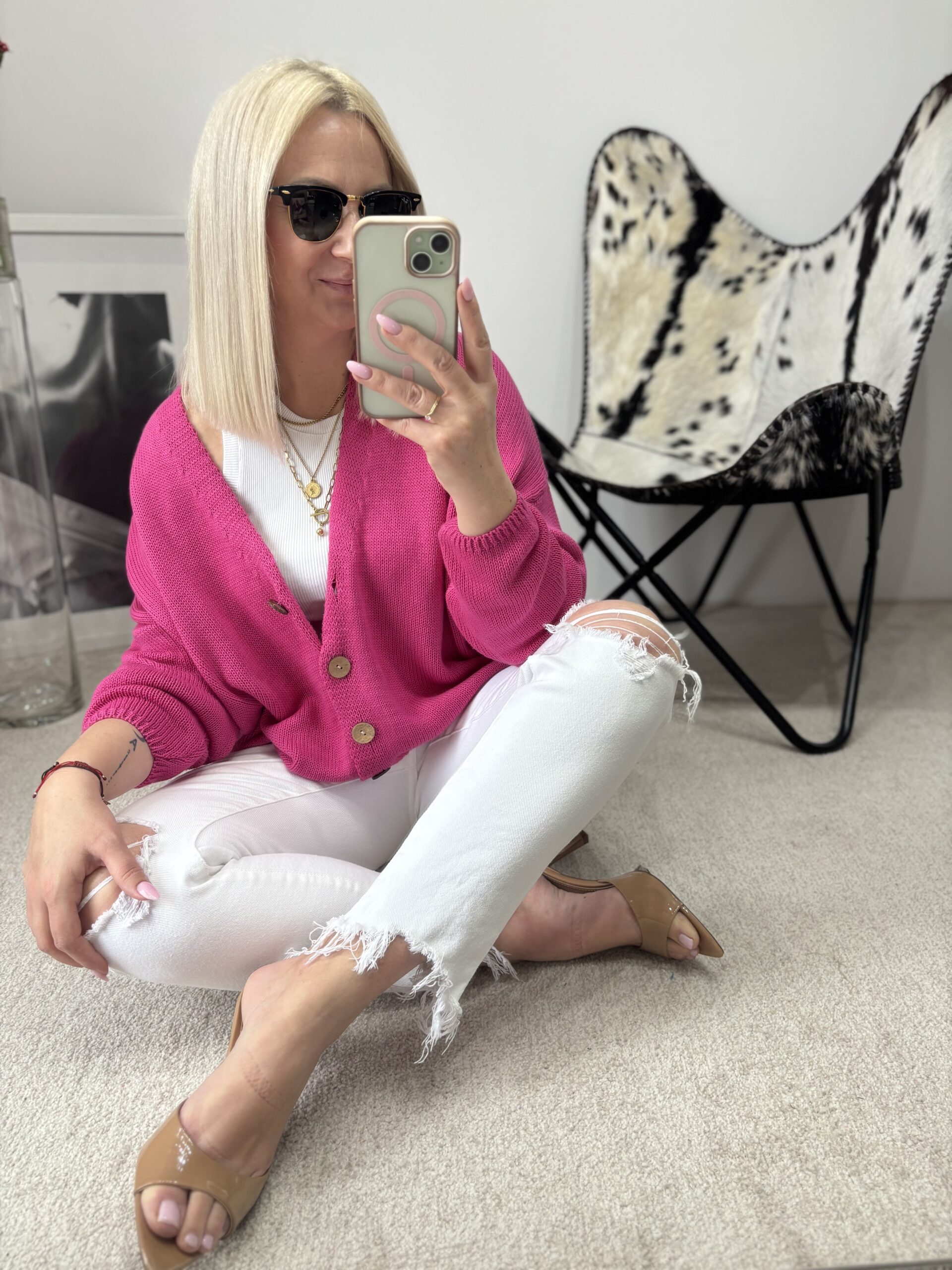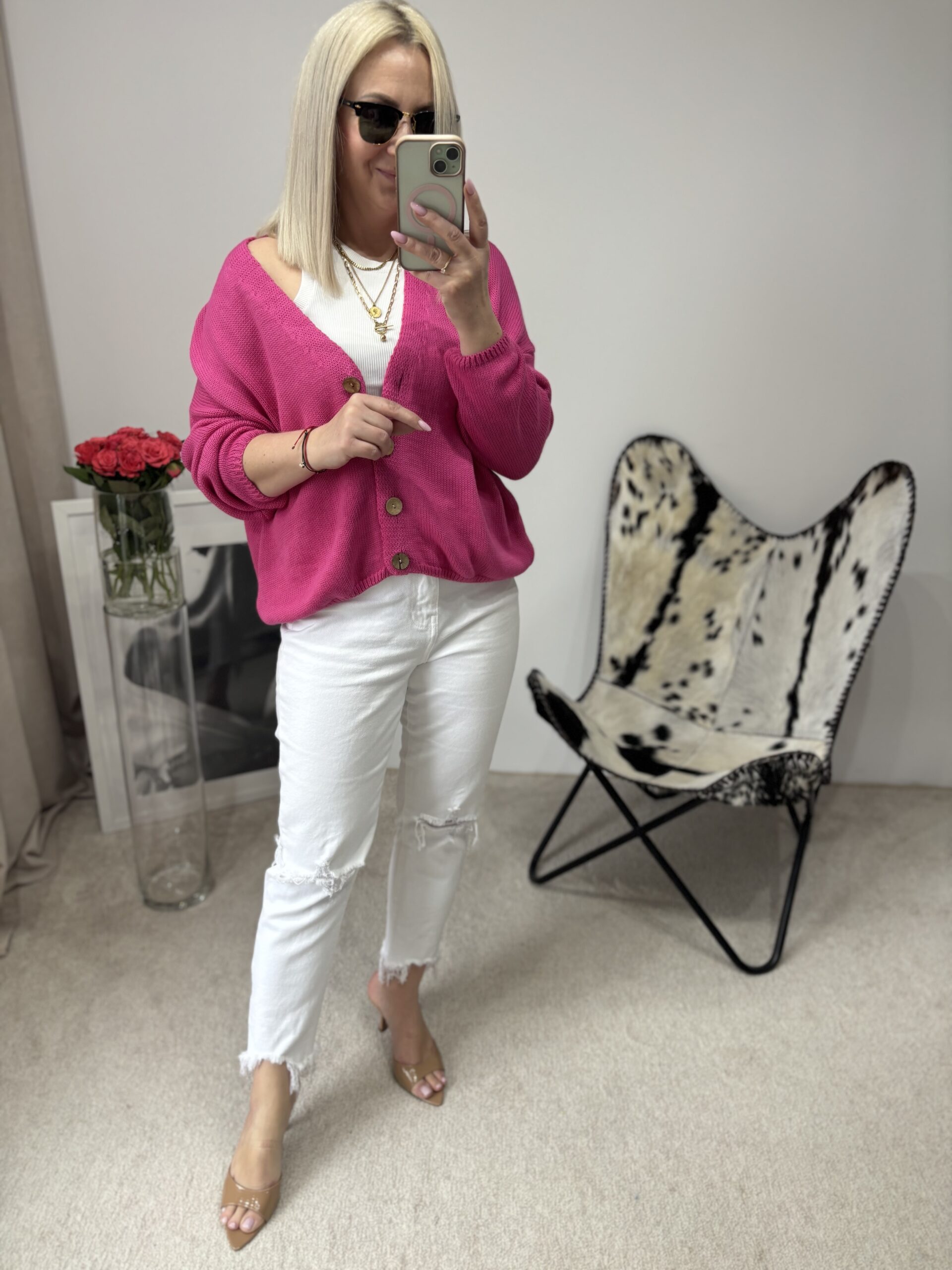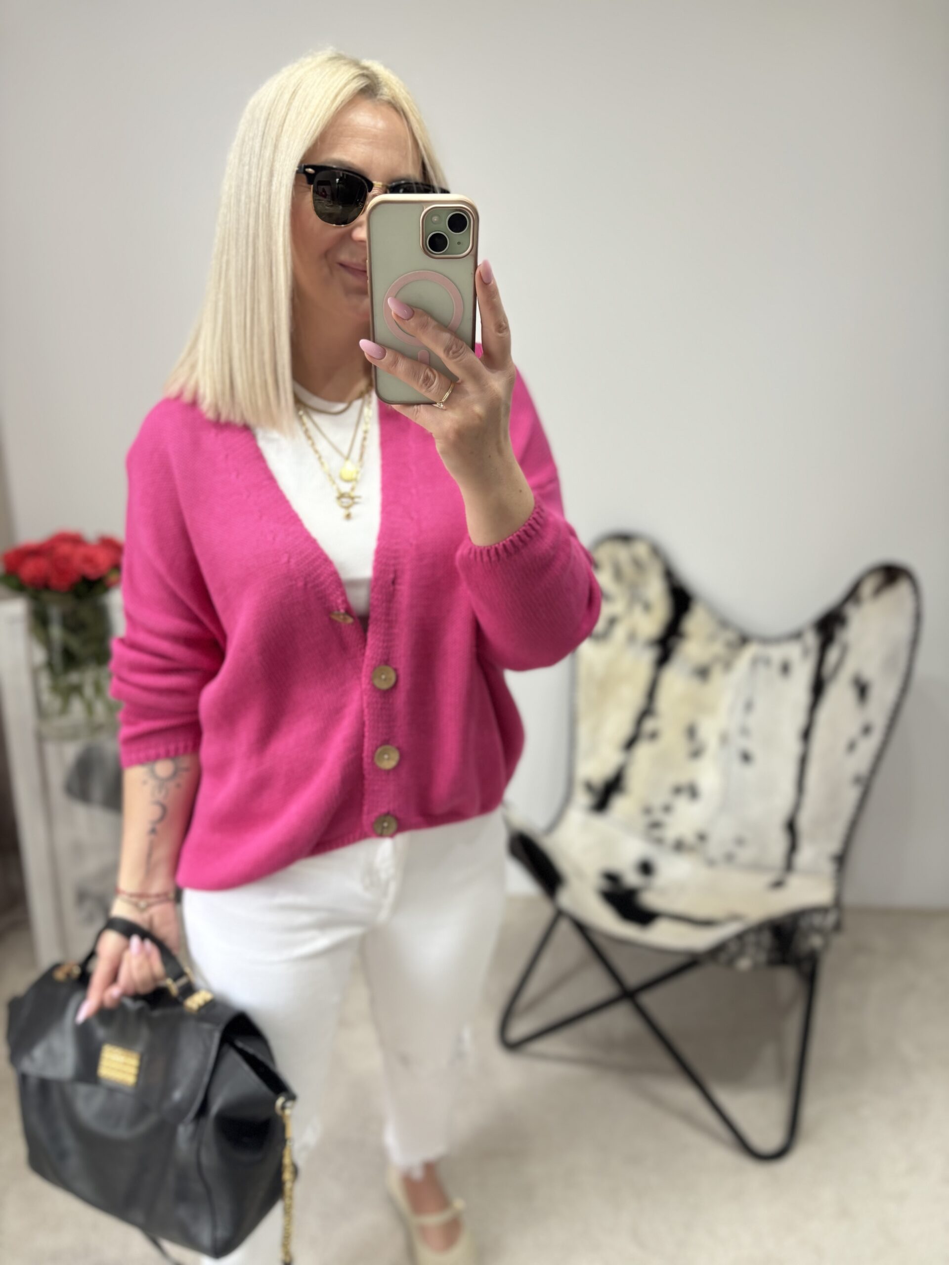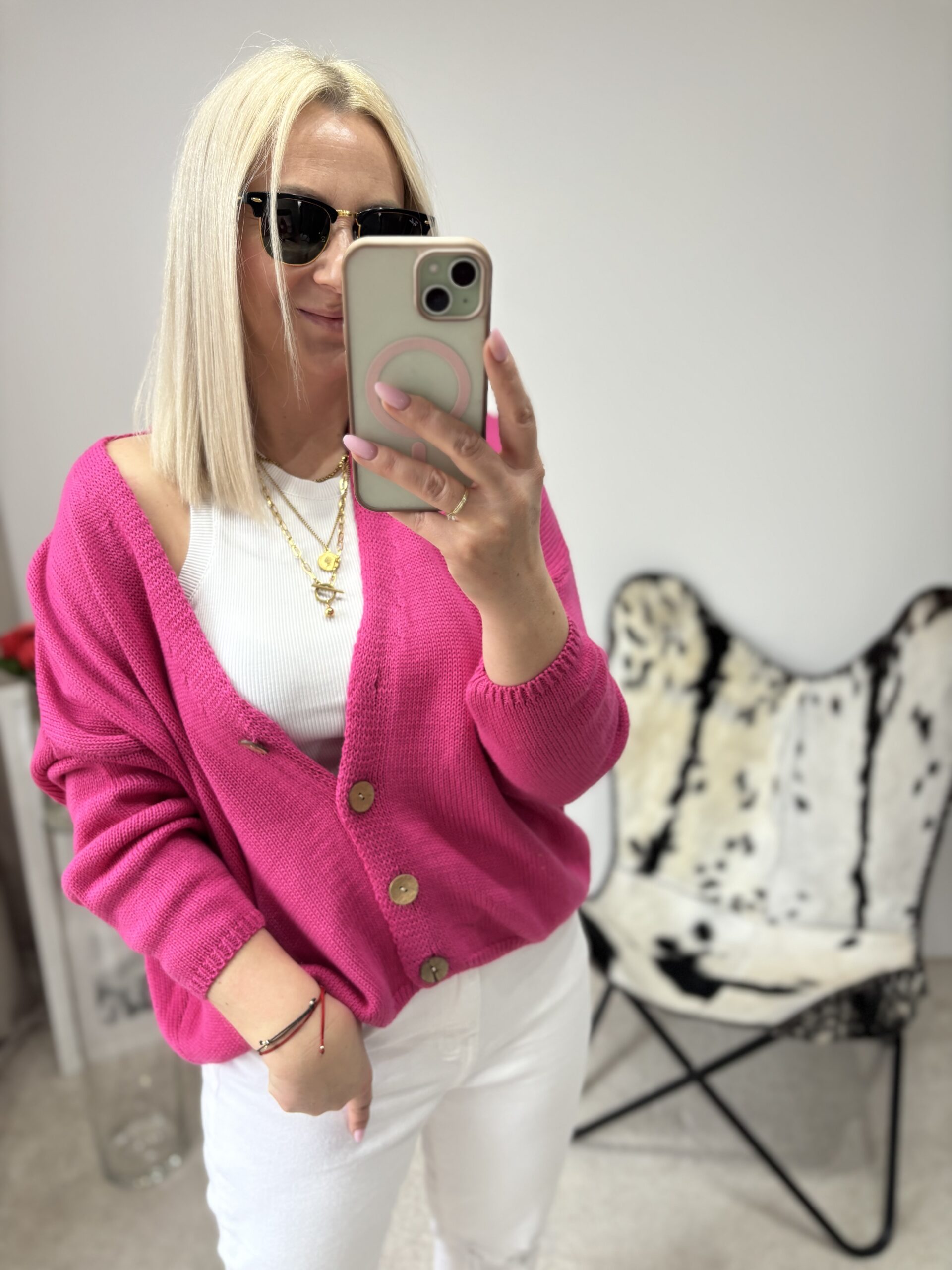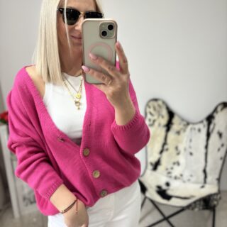 SWETEREK Z GUZIKAMI FUKSJA