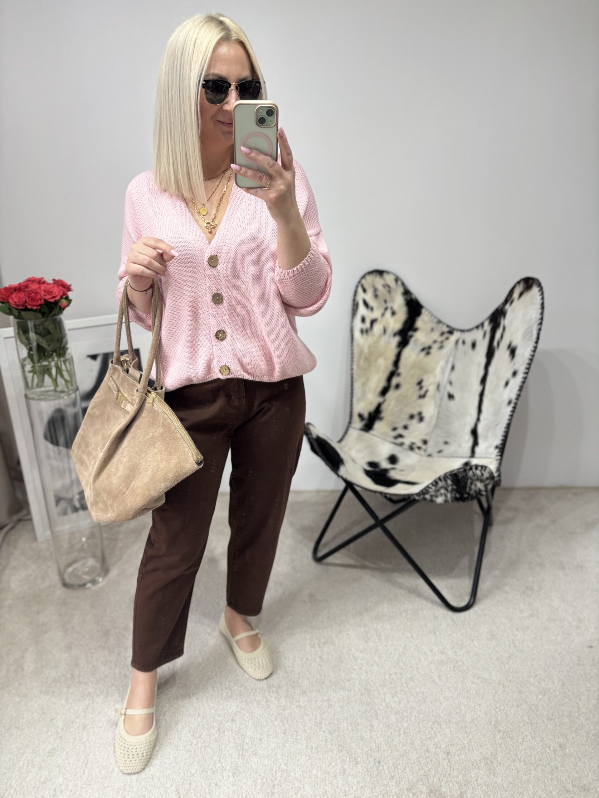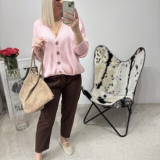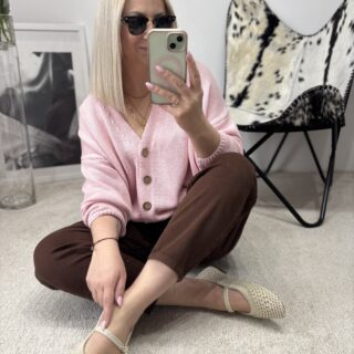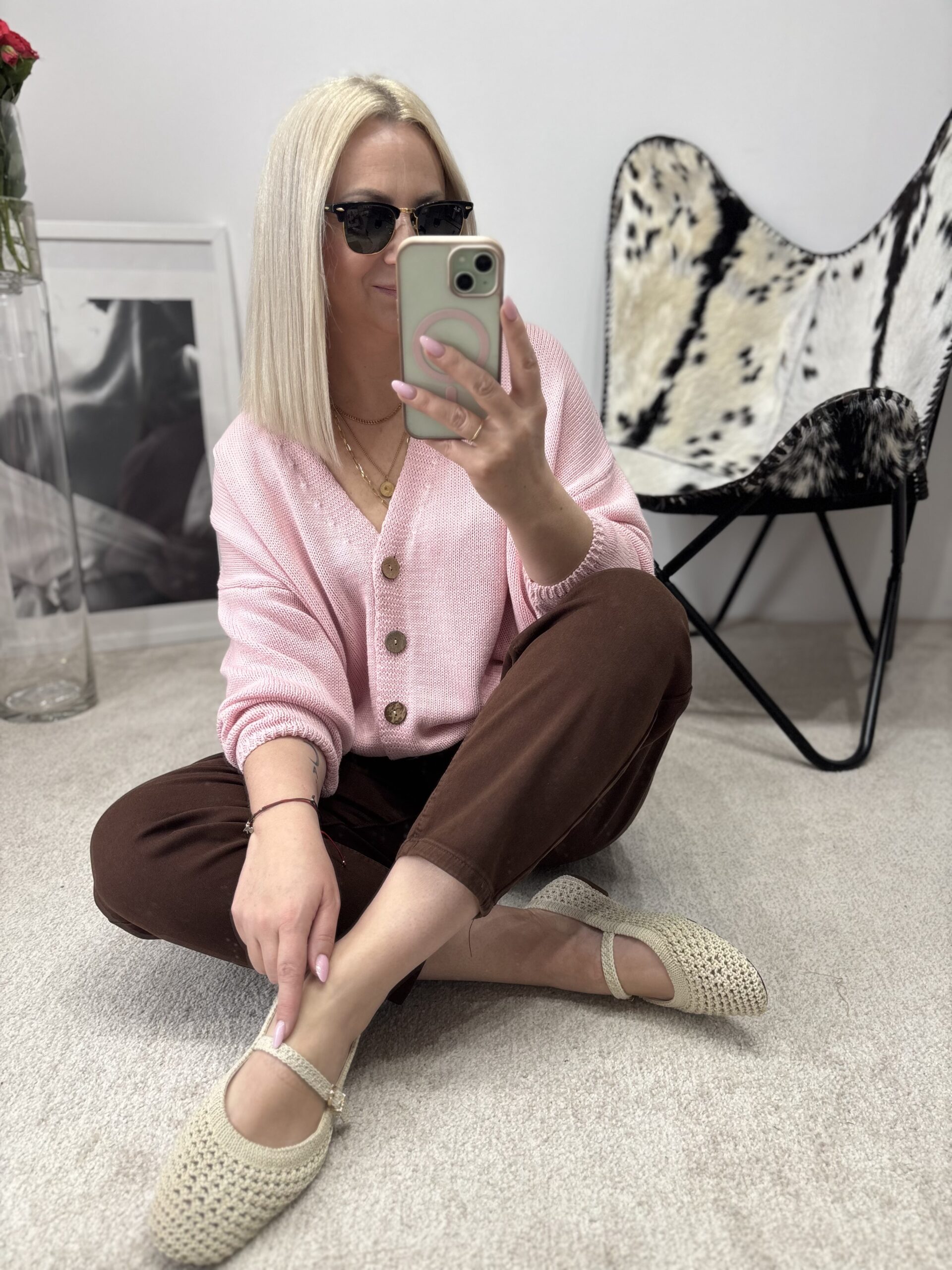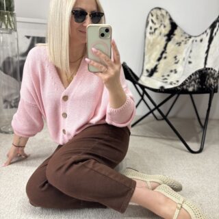 SWETEREK Z GUZIKAMI JASNY RÓŻ